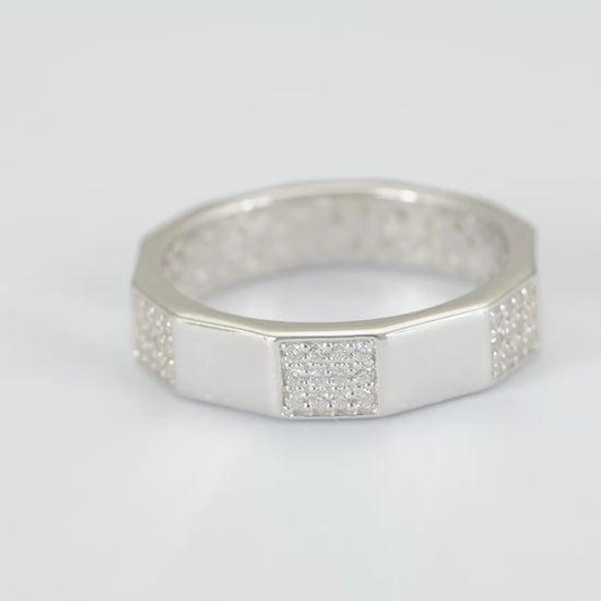 Architectural strength meets refined brilliance. A bold pavé signet ring designed for modern elegance.